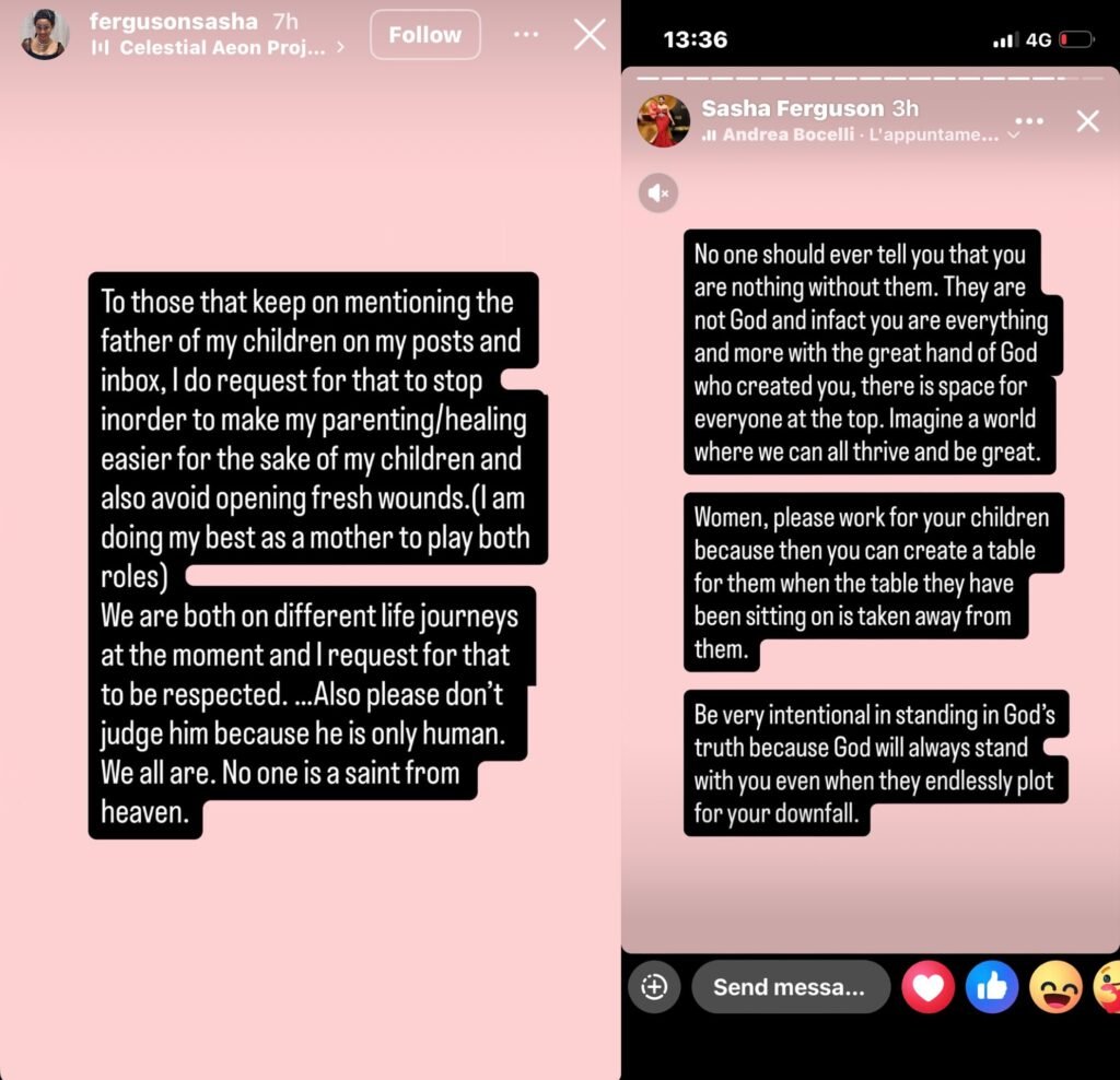 She also urged people to stop attacking or questioning the father of her kids: “We are both on different life journeys… please don’t judge him. No one is a saint.”