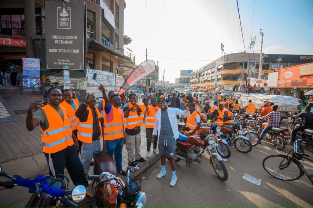 Various gifts ranging from company wristbands, caps, T-shirts and team jerseys of the top European teams to headsets and phones were given out for free. This was in addition to over 200 reflector jackets that were given out to bodaboda riders.