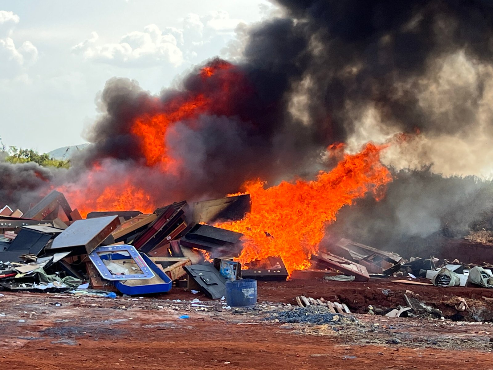 The destroyed equipment comprised 160 slot machines, 112 fish tables and 137 sacks of assorted spare parts previously recovered during enforcement operations targeting unlawful gaming premises.